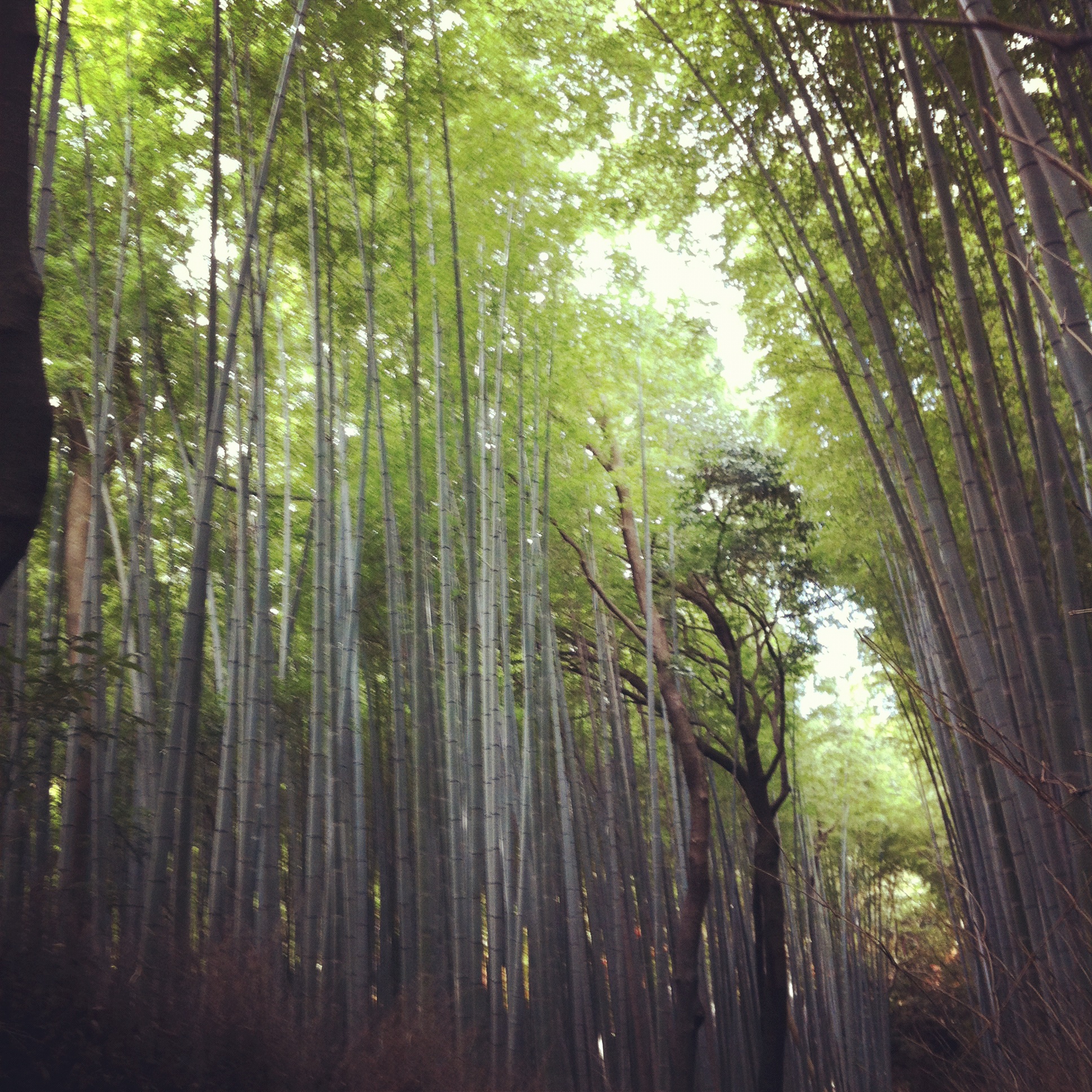 跨過了人滿為患的渡月橋,行過了嵐山的大街,走進又離開了天龍寺直至竹林小徑。才稍稍的有一種來到自然的感覺,兩旁的竹林依序展開,像極了日本電影或者電玩裡面的場景。偶爾有一台人力車趕路經過,我彷彿可以想到舊時代這裡的場景。