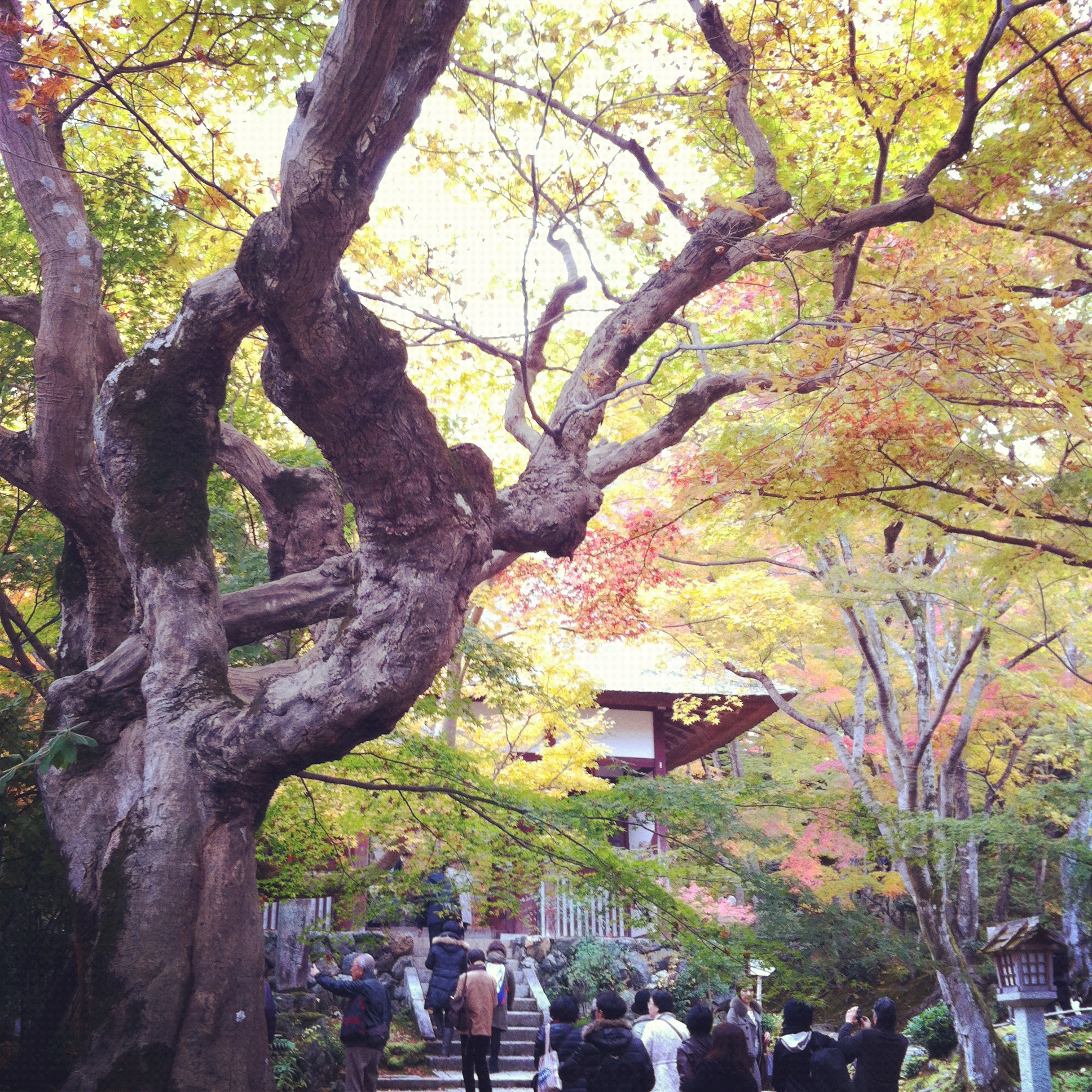 好不容易走到了常寂光寺,印象中一個小而美麗的寺廟。當買了票走進來的時候,才發現這趟旅程當中最美麗的紅葉。這美麗不是數大而單一的美,而是一種深紅淺紅的美,點綴著一些青綠。