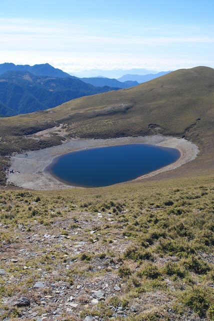 當我坐在嘉明湖畔休息的時候,抬頭看山邊的人群不斷的從另一側翻過稜線過來,像是大軍屯兵山邊,隨時要向下進攻的模樣:p