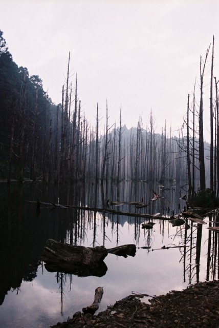 在無數次的上切又行下坡後,水漾森林黃昏及漸漸入夜的景色在我們的眼前展開。